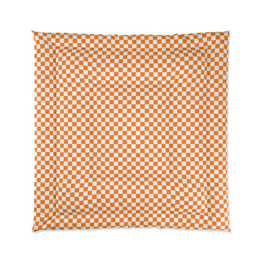 Orange and White Checkerboard Comforter — Game Day Bedding